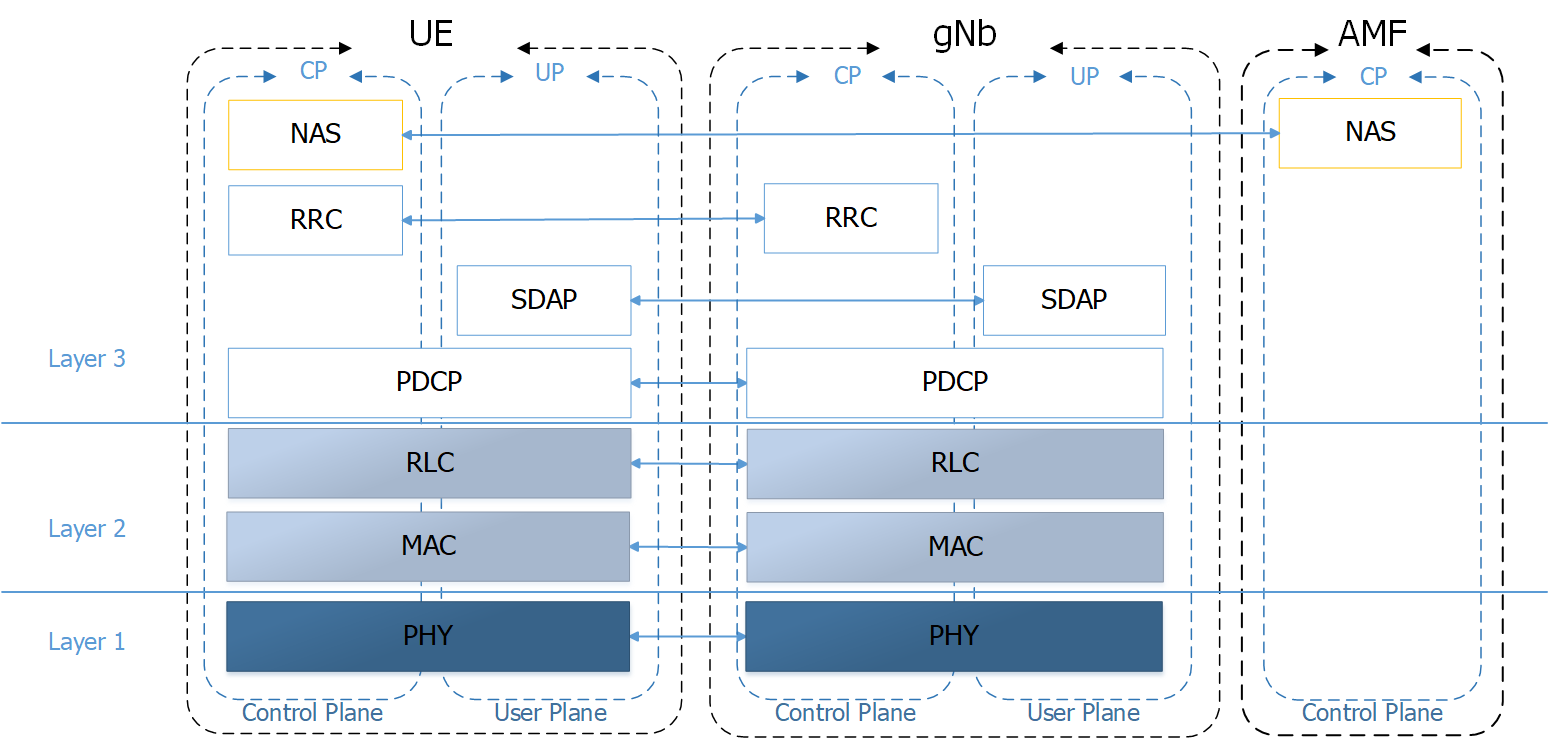 Рисунок 2 – Уровни стека протоколов базовой станции gNB