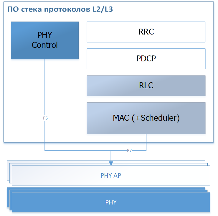 ПО L1-HighPHY/L2 реализует ключевые функции стека протоколов уровня L1-HighPHY и L2 (здесь и далее применяются обозначения уровней стека согласно рекомендациям стандарта 3GPP).