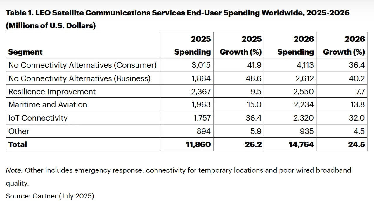 Аналитики хитрят, потому что темпы роста LEO-сегмента замедляются. 24,5% в 2026 году выглядят отлично, если не брать во внимание, что в 2025 году рост составлял 26,2%. А на официальном сайте Gartner вообще указано, что с 2024-го по 2029-й расходы на LEO-услуги будут ежегодно расти в среднем на 21,9%, достигнув $25 млрд в год к концу периода.